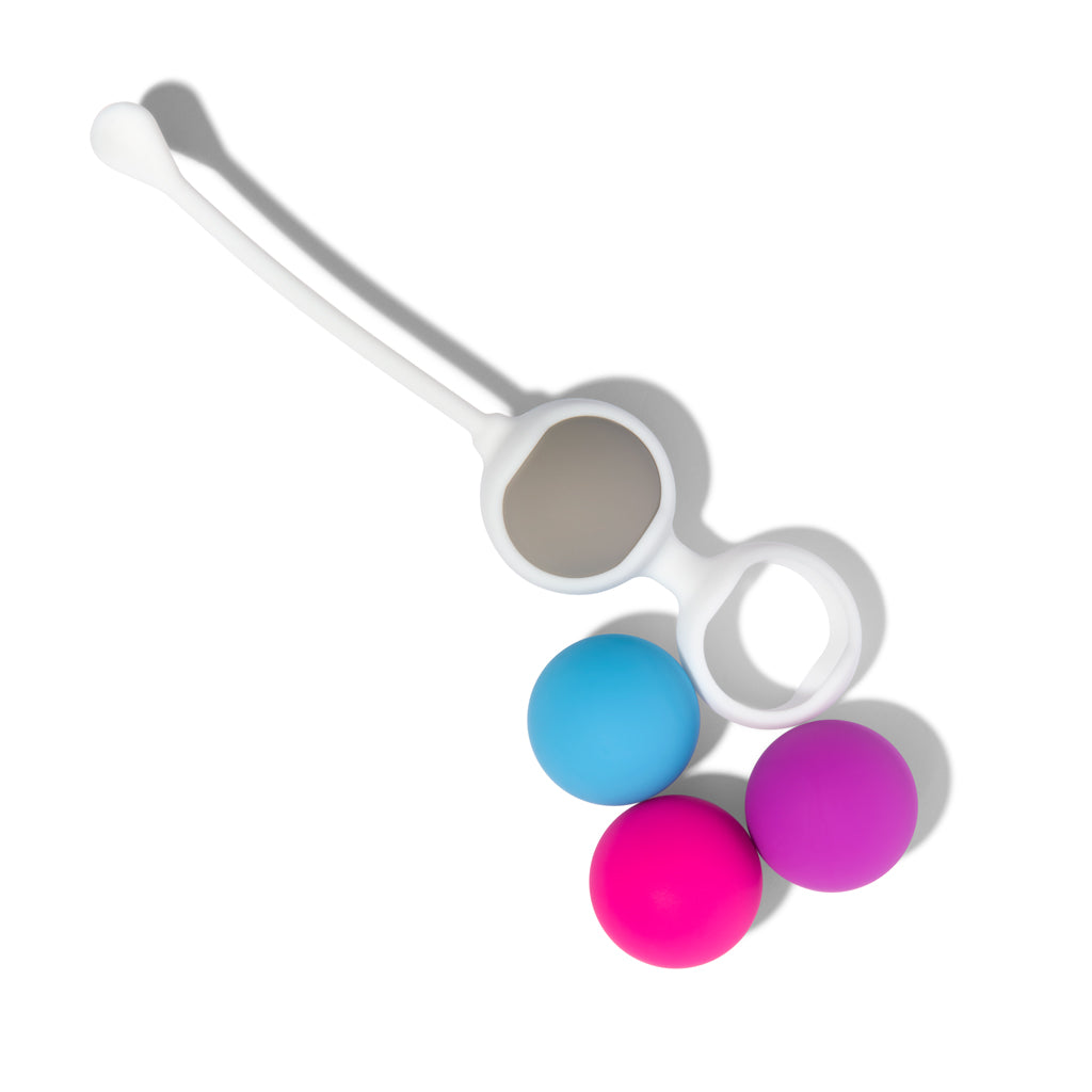 Lo primero que debes hacer es elegir las bolas que vayas a usar. Como es un sistema progresivo, te aconsejamos que elijas las de menos peso (la azul y la rosa). Con ellas y un poquito de lubricante a base de agua (para no dañar su material) podrás comprobar lo fuerte que es tu suelo pélvico. Si aguantas las bolas sin problema, el próximo día podrás combinar la bola rosa con la lila (con un poco más de peso) y si ves que aguantas, combina la lila con la gris (la bola de más peso).